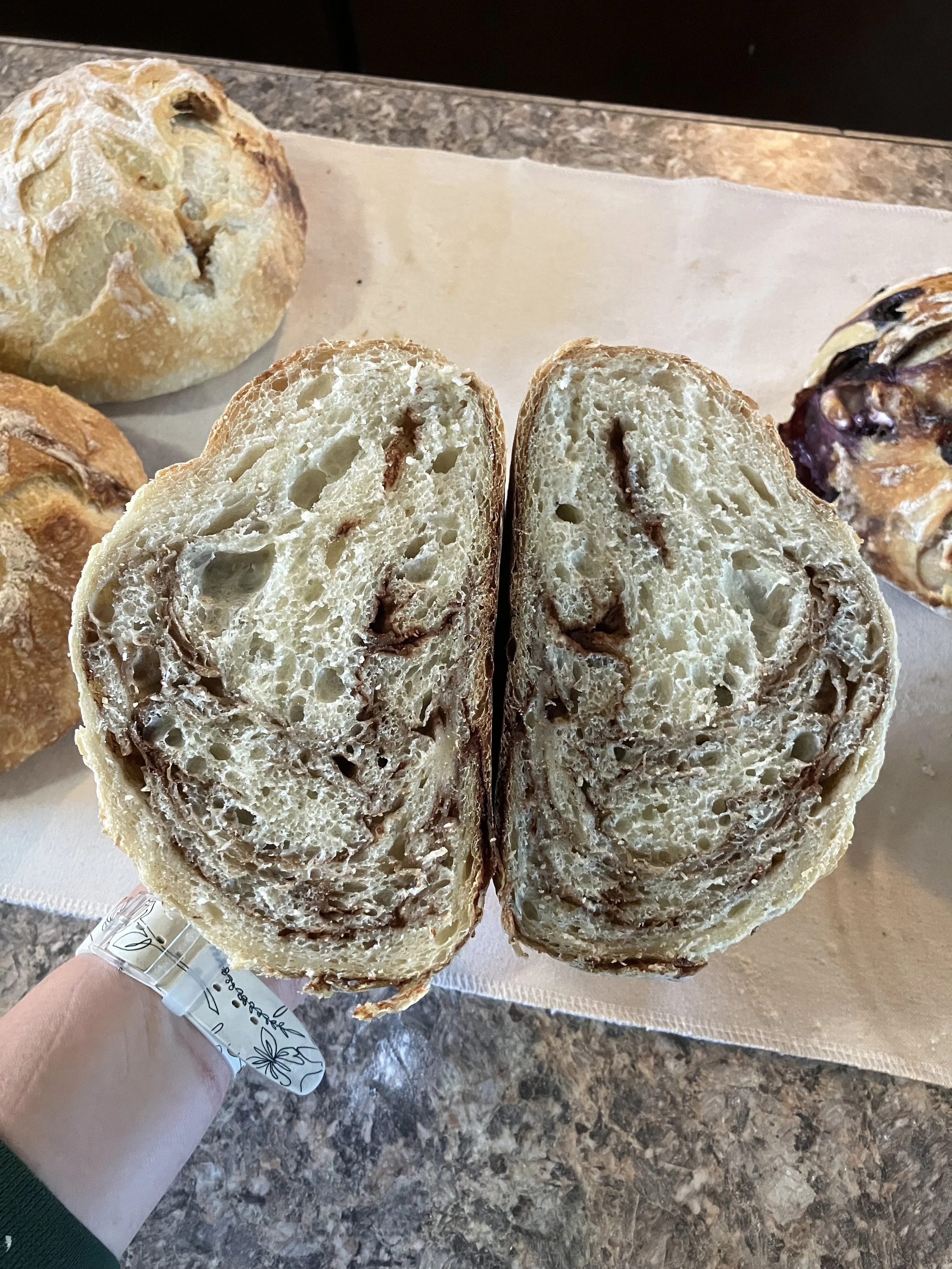 This artisan loaf is made with white flour, water, salt, cinnamon, and sugar, creating a sweet, cinnamon-swirled treat. Add raisins for an extra touch of sweetness. Slice it thick, toast it, slather with butter, and enjoy every bite!